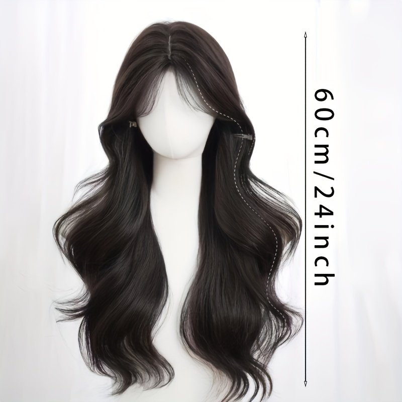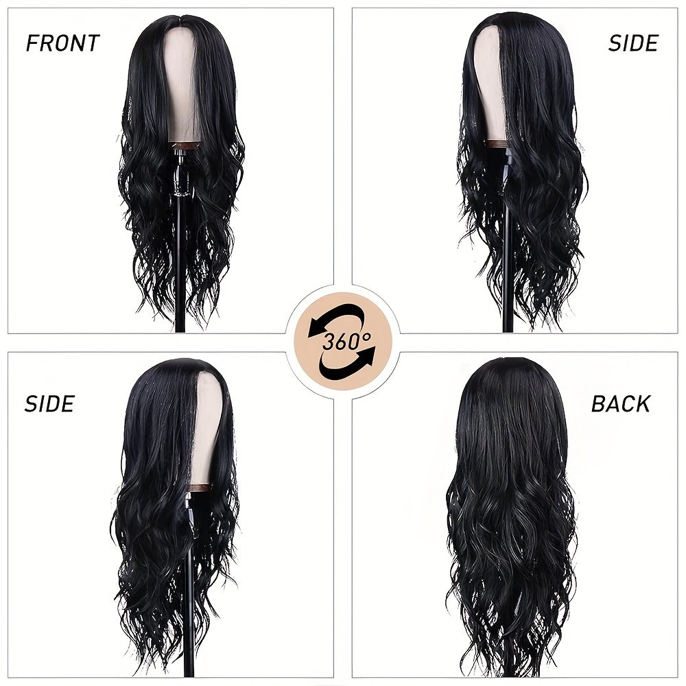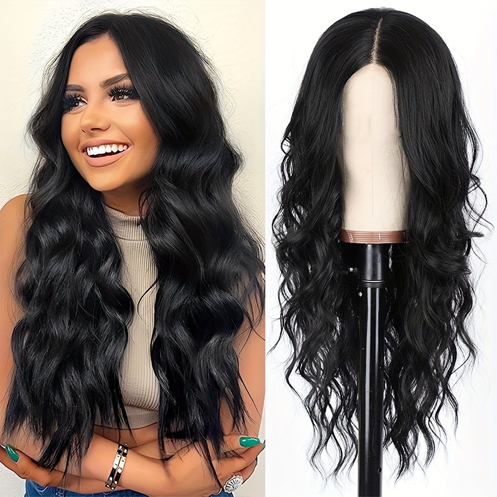 Women’S Black Wig, Long Wavy Wig, 26-inch (about 25.98 inch) Middle Part Synthetic Heat-resistant Wig, Suitable For Daily Parties