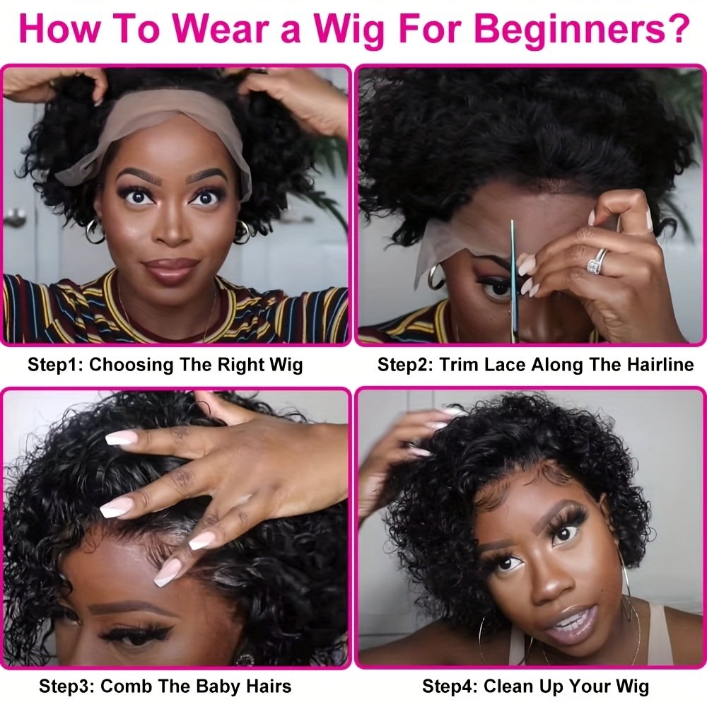 Christmas Big Pixie Cut Wig Human Hair 13×1 Lace Frontal 130% Density Curly Wave 6-inch Natural Black Short Bob Wig for Women – Elegant Style, Versatile for All Ethnicities, Hair Wig