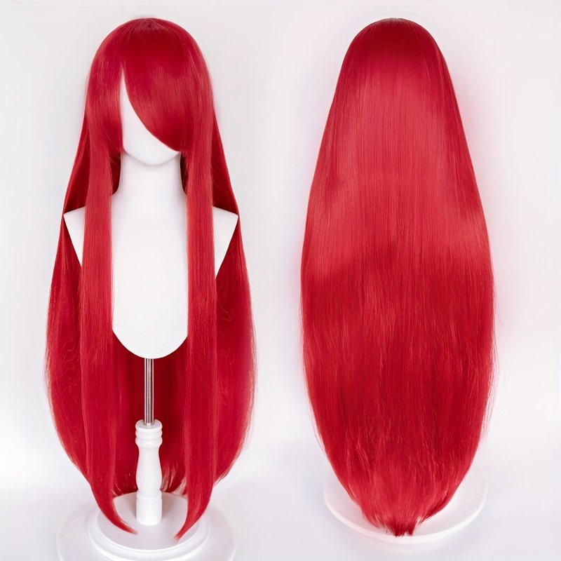 [32″ Heat Resistant Synthetic Wig] 32″ Long Straight Synthetic Wig with Bangs – Heat Resistant, Versatile Black Hair for Women, Ideal for Cosplay, Halloween & Daily Use