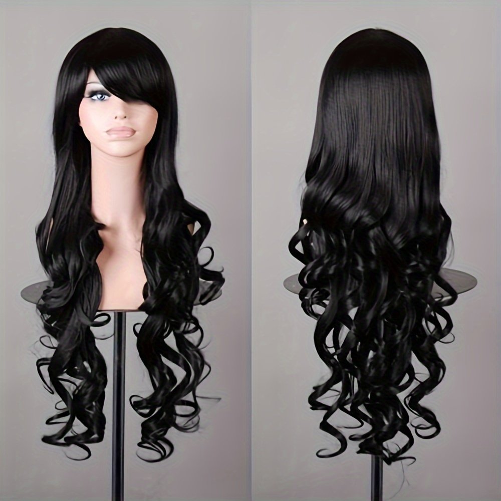 [80cm Long Curly Anime Wig] Ladies’ 80cm Long Curly Hair Anime Wig With Side-swept Bangs And Large Wavy Curls Wig