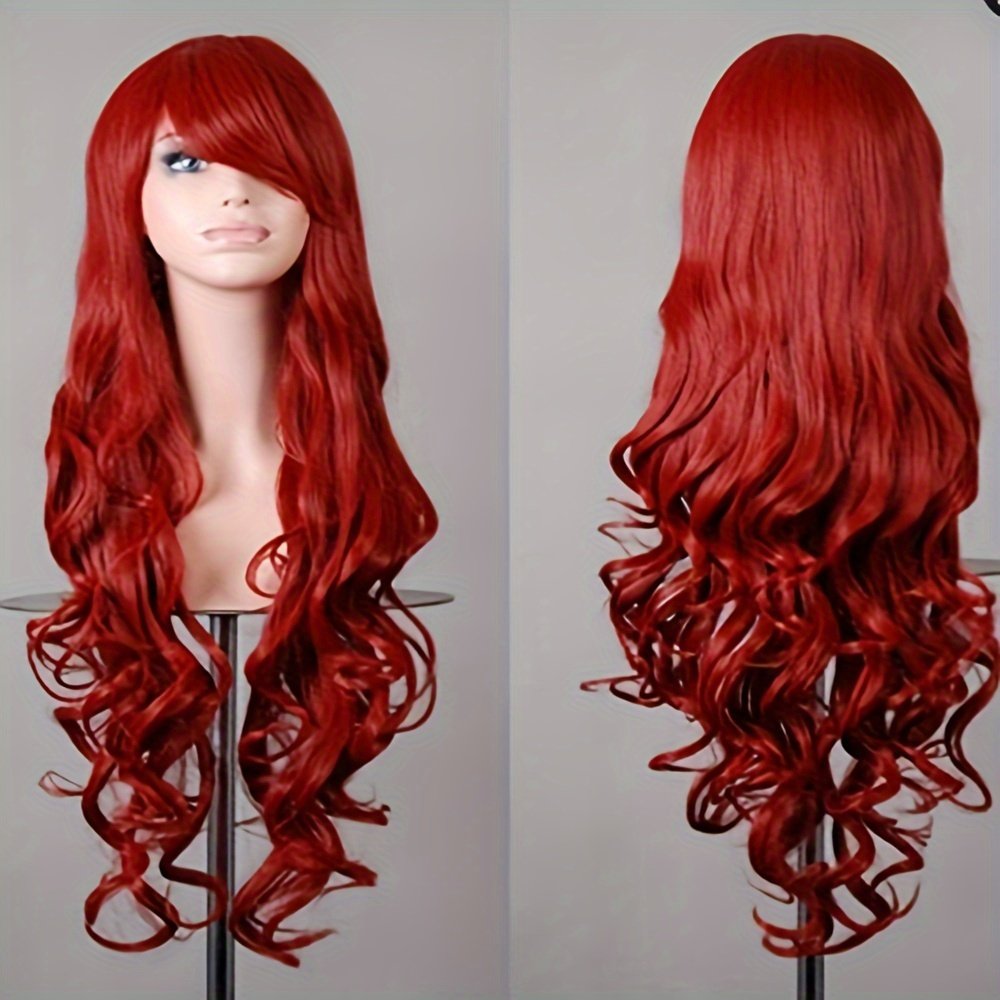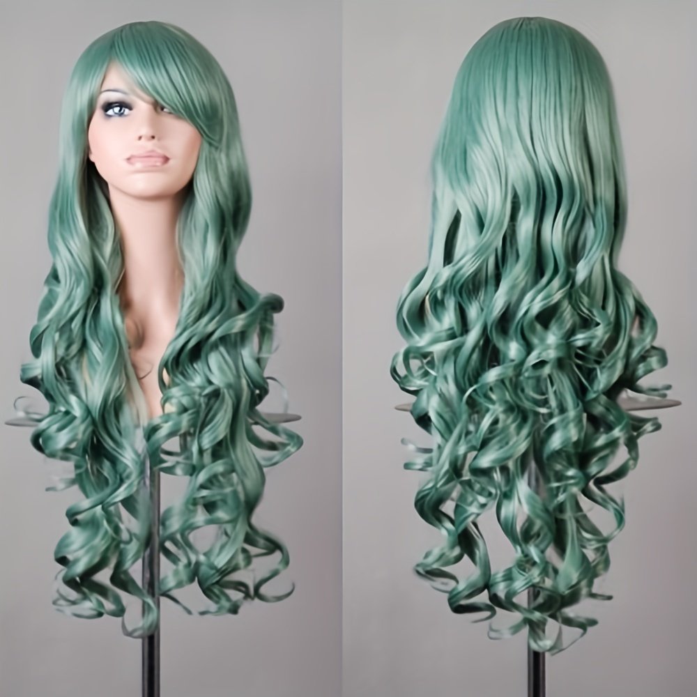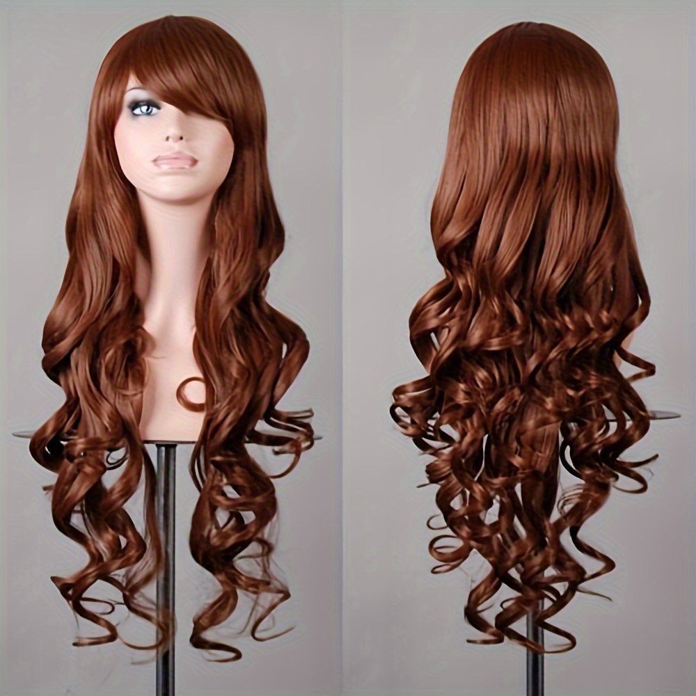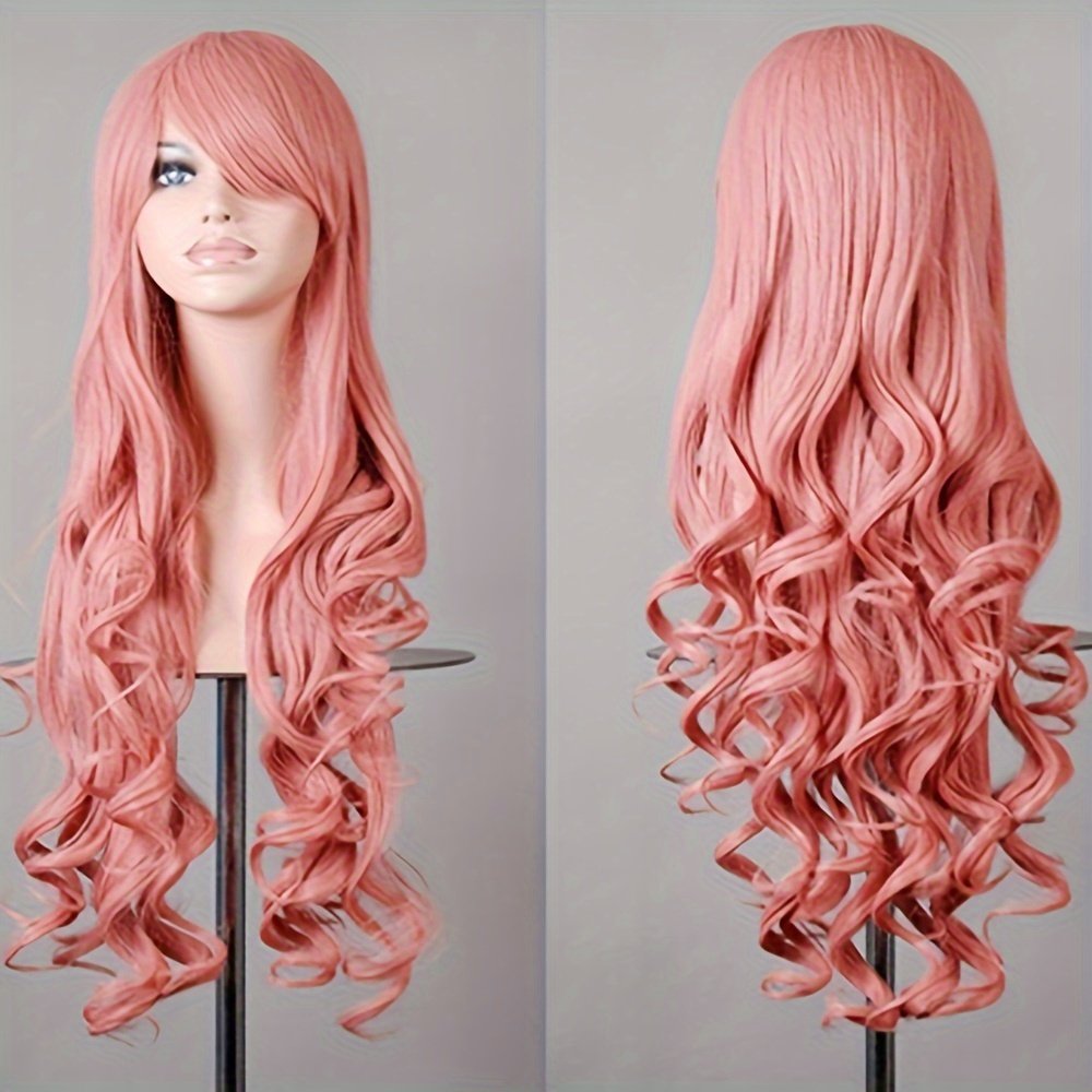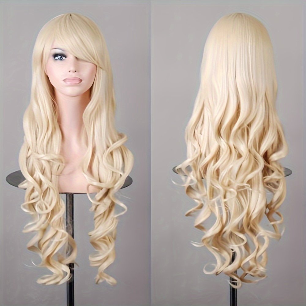 [80cm Long Curly Anime Wig] Ladies’ 80cm Long Curly Hair Anime Wig With Side-swept Bangs And Large Wavy Curls Wig
