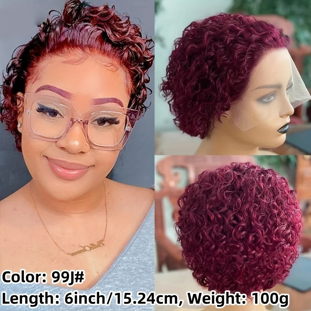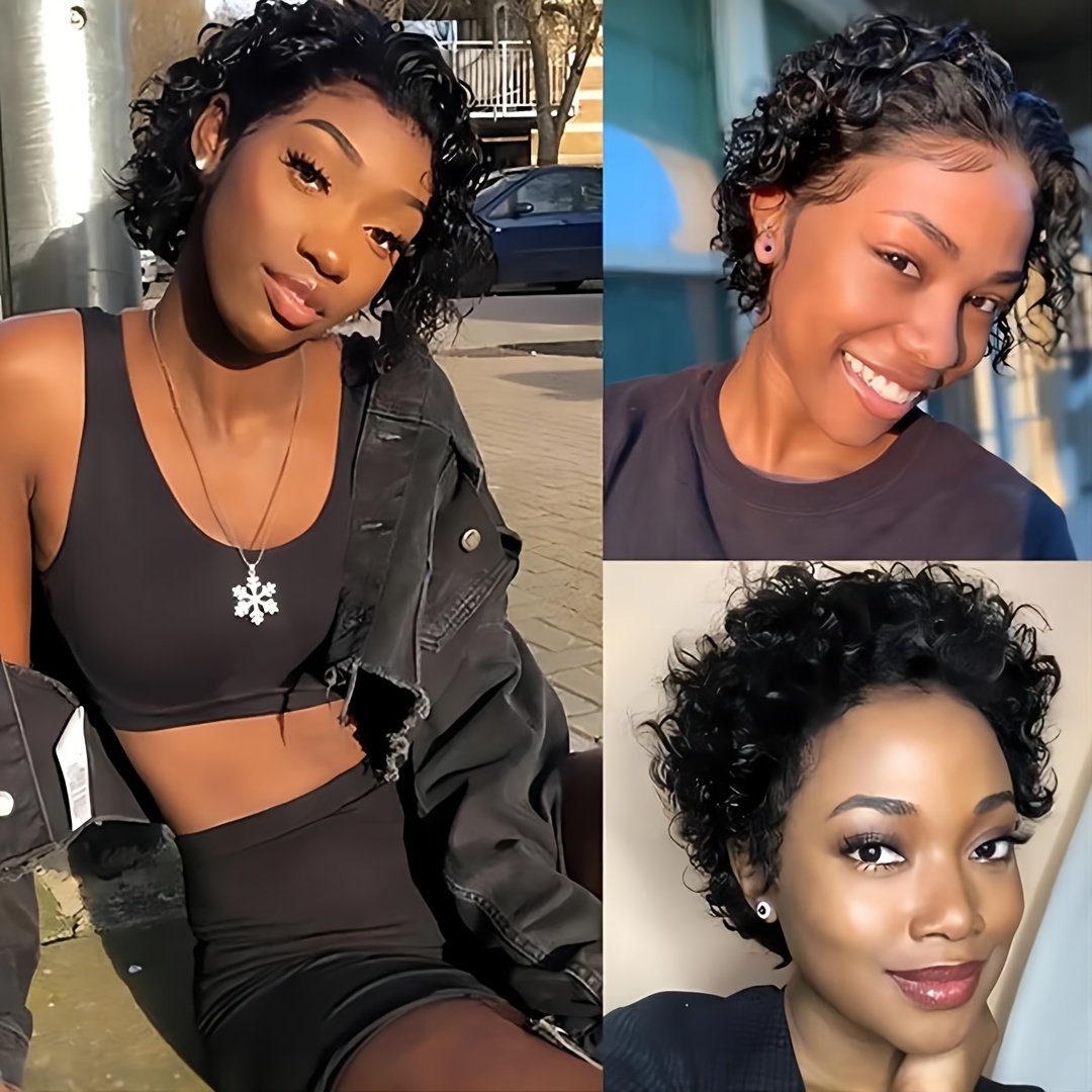 Christmas Big Pixie Cut Wig Human Hair 13×1 Lace Frontal 130% Density Curly Wave 6-inch Natural Black Short Bob Wig for Women – Elegant Style, Versatile for All Ethnicities, Hair Wig
