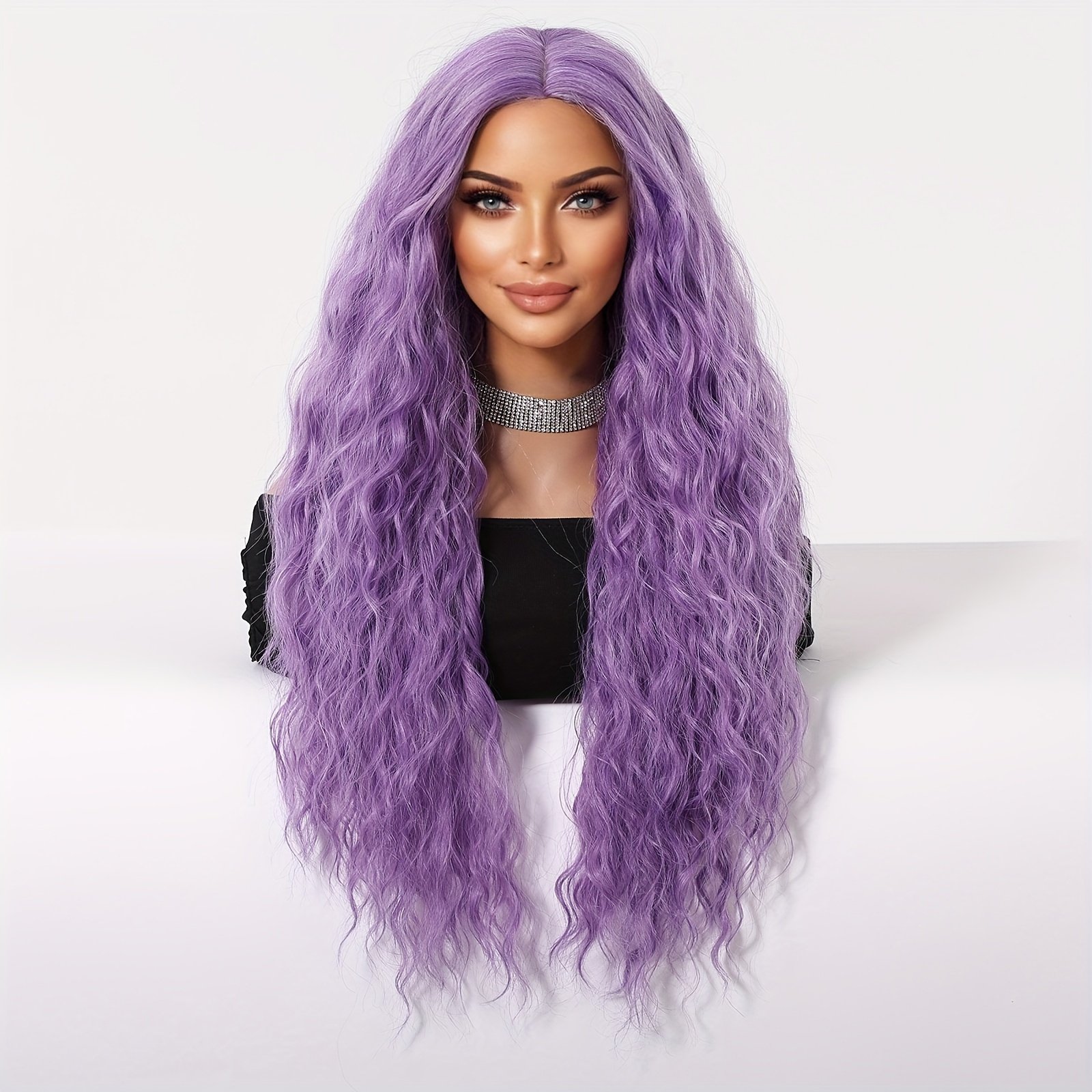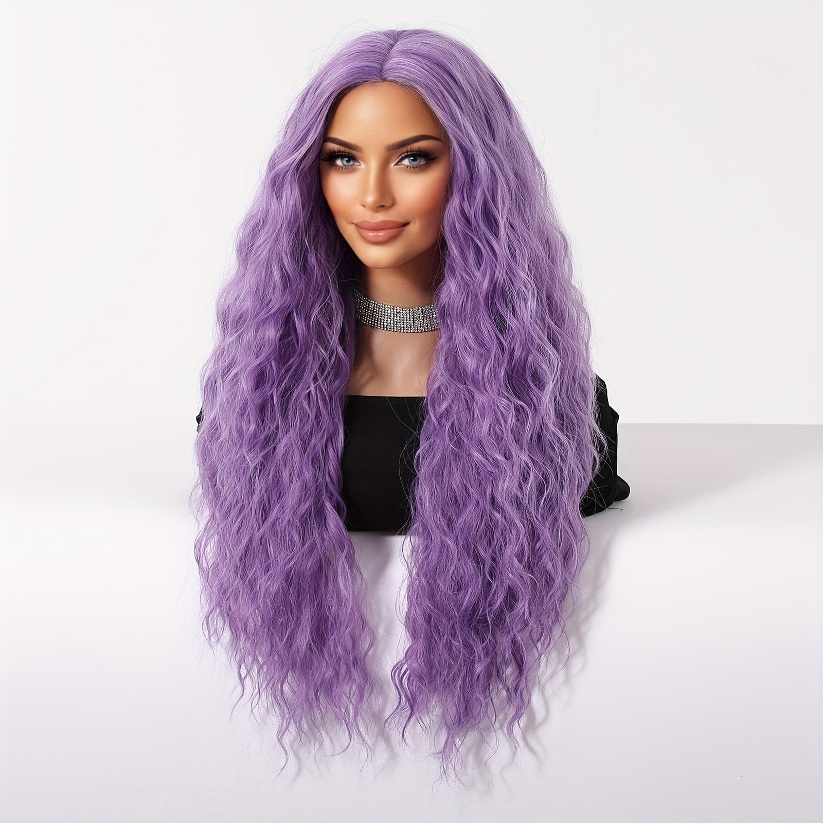 Women’S Black Wig, Long Wavy Wig, 26-inch (about 25.98 inch) Middle Part Synthetic Heat-resistant Wig, Suitable For Daily Parties