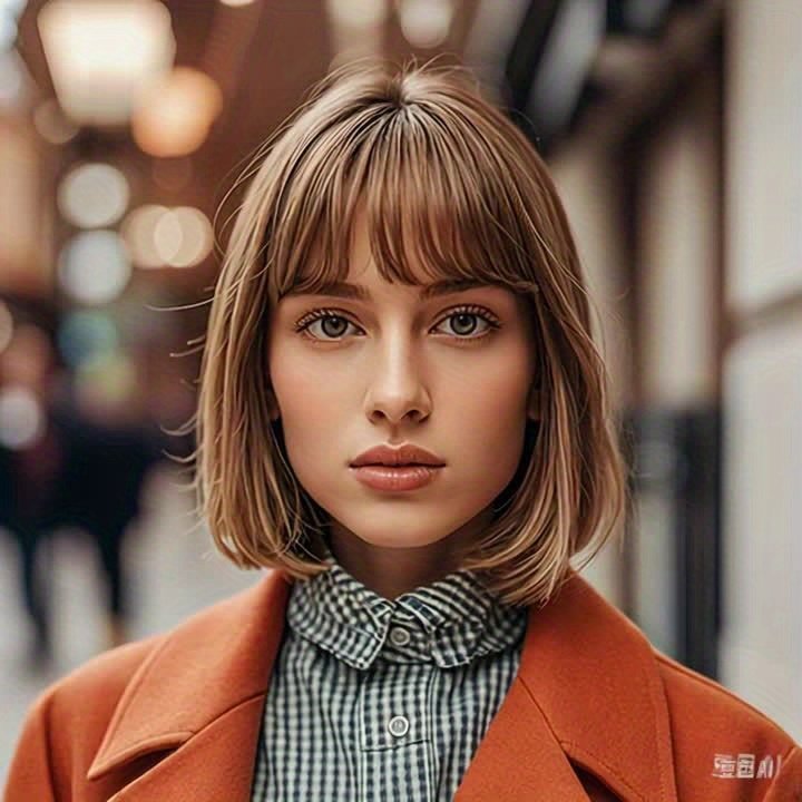 Light Brown Daily Wear 12-inch Bangs Ladies Wig – Party Animation Role-playing