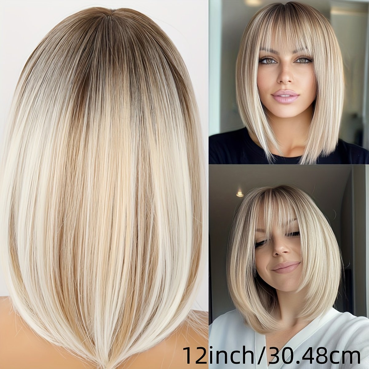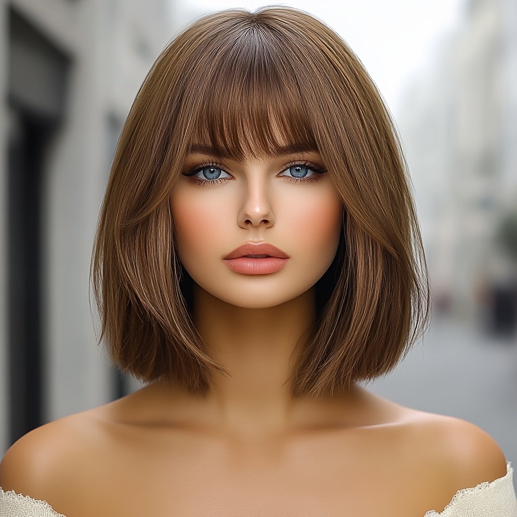 Light Brown Short Hair Wig with Bangs – Lightweight & Breathable Synthetic Fiber, 150% Density, Straight Hair, Perfect for Music Festivals, Parties, and Casual Attire, Unique Gift Idea for Women, Everyday Wig | Natural Appearance | Breathable Cap Design