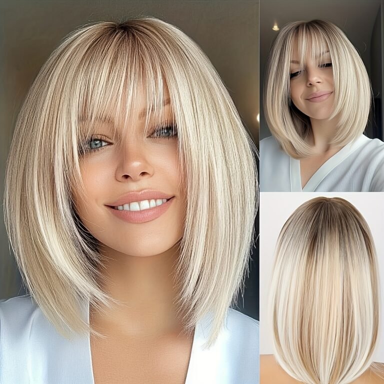 Light Brown Short Hair Wig with Bangs – Lightweight & Breathable Synthetic Fiber, 150% Density, Straight Hair, Perfect for Music Festivals, Parties, and Casual Attire, Unique Gift Idea for Women, Everyday Wig | Natural Appearance | Breathable Cap Design
